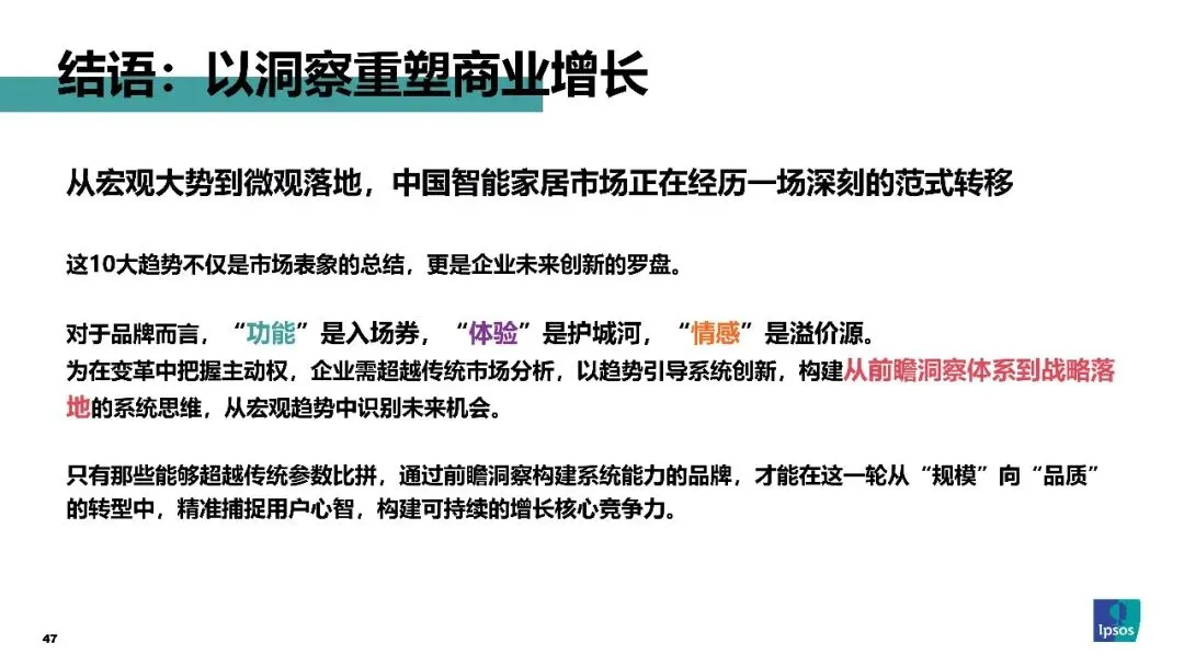 未来,企业需以趋势引导系统创新,从“功能”到“体验”再到“情感”构建竞争力,通过洞察重塑增长,在品质化、情感化、个性化阶段抢占先机。
