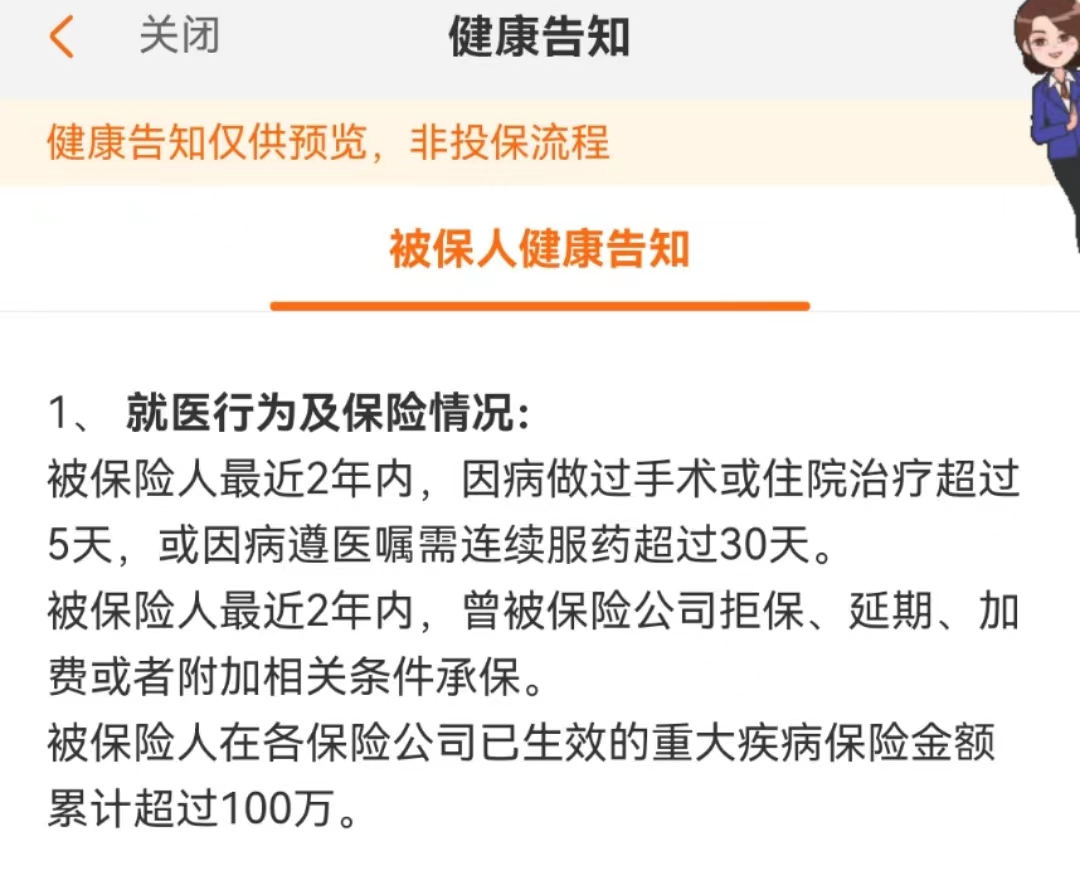 第一条属于基础询问, 比如2年内的手术、治疗等等,