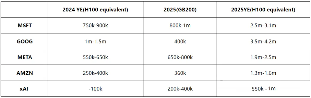 同时,Meta也不甘落后,拟购入35万块H100 GPU,旨在为其强大的Llama 4 AI模型注入更澎湃的算力。据LessWrong网站的估算,到2025年,微软、谷歌、Meta、亚马逊以及新兴的xAI这五大巨头,在GPU/TPU的持有量上,若换算成等效H100的数量,将惊人地超过1240万台。这一数字不仅彰显了科技巨头们在算力“军备竞赛”中的持续投入,更预示着一场前所未有的AI算力盛宴正在席卷全球。
