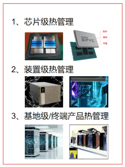 基地级/终端产品热管理散热技术,一般是指对数据中心或终端产品的散热,终端产品包括汽车、机器人等,其散热技术主要包括自由空气冷却、冷热通道冷却、蒸发冷却和地热冷却技术等。