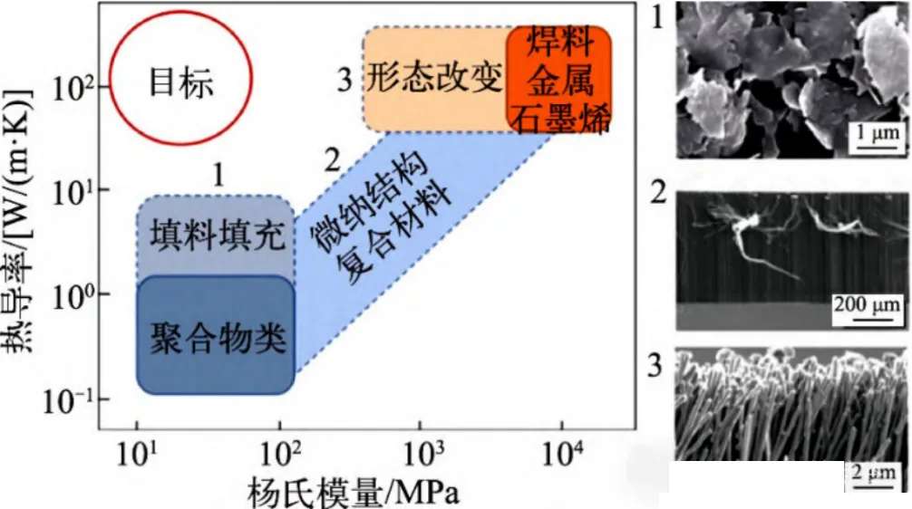 热界面材料(TIM)是用于涂敷在散热器件与发热器件之间,降低它们之间接触热阻所使用的材料的总称。由于器件制造公差和表面粗糙度的存在,器件之间通常会有微小的空隙。这些空隙含有空气,而空气是热的不良导体,常温下导热系数仅为0.026W/(m·K),因此就造成了比较大的接触热阻。因此,导热界面材料(TIM)被用来填补这些空隙,排出空气,提供更好的热传导路径,降低界面热阻,从而提升散热效率。芯片通过TIM与热沉进行贴合,TIM在远端冷却和近芯片冷却中起到十分关键的作用。目前针对TIM的研究是多路并行的,常见的材料主要分为聚合物和金属2种类型。