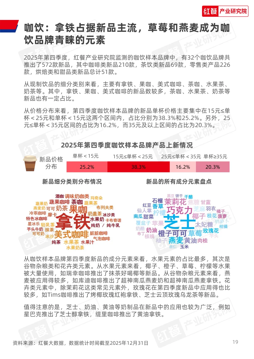 红餐产业研究院发布四季度餐饮行业观察报告。本报告多方面剖析2025年第四季度餐饮行业上下游发展情况。其中,基于各类数据系统梳理了2025年餐饮行业的发展概况,并对第四季度六大餐饮赛道的产品上新情况进行分析。