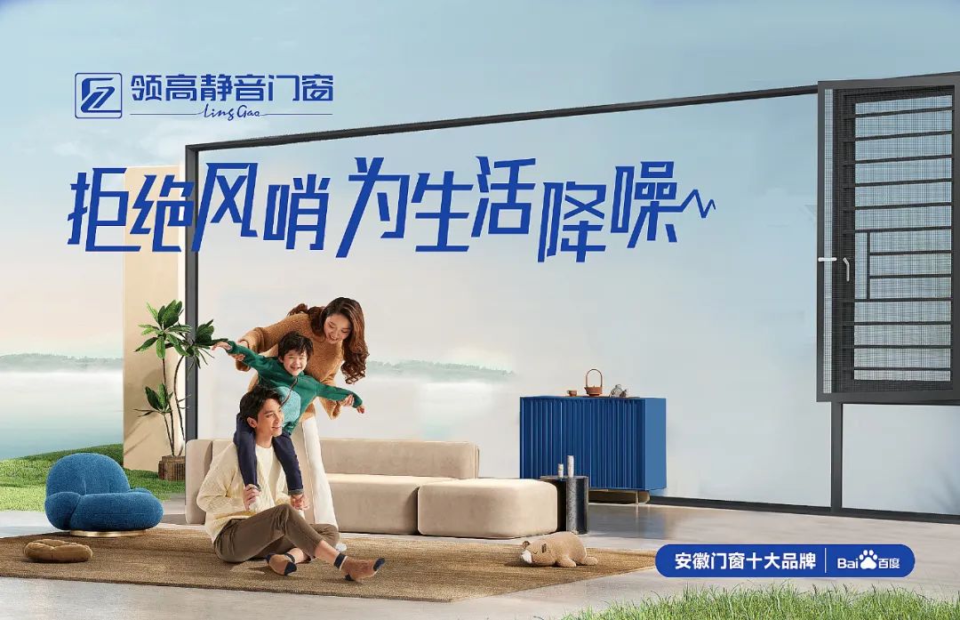 领高深耕行业15年,随着居民消费需求进一步朝高端化、品质化、个性化升级。领高品牌新定位 [拒绝风哨,为生活降噪] ,进一步激活领高高端定制在门窗行业市场的竞争力。[拒绝风哨,为生活降噪] 这句广告词直指消费者对生活品质夙求,也表达了领高对门窗产品注入人性化的理解。