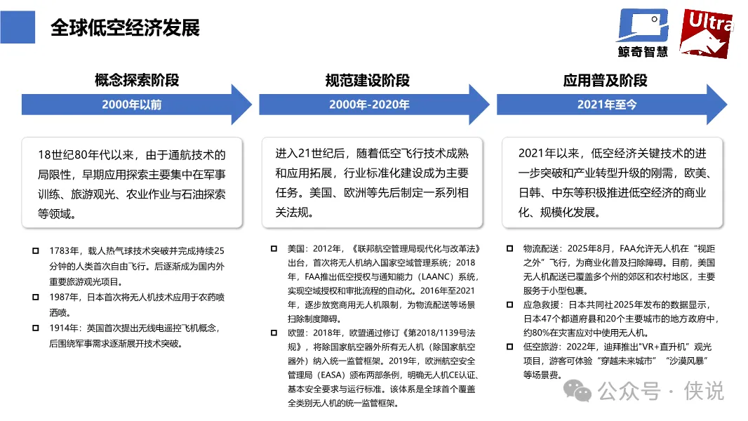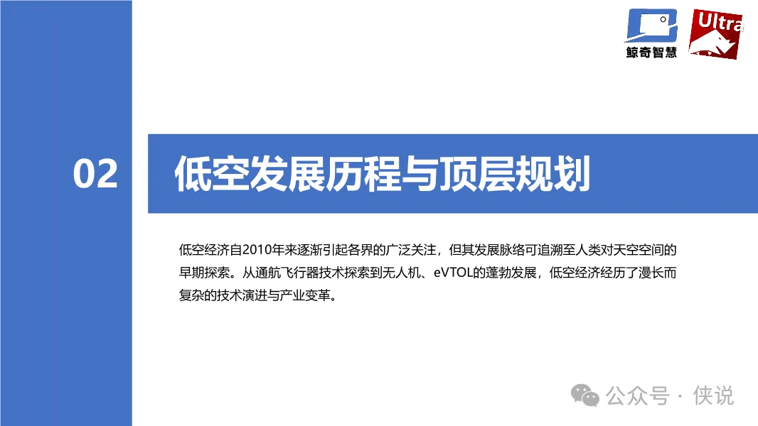 低空发展历程与顶层规划 全球/中国低空经济规模 核心赛道-无人机 / eVTOL 低空经济发展阶段与路径