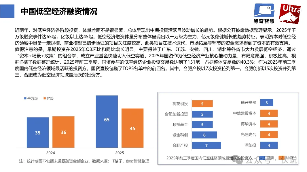 2025年中国低空经济规模预计将达8519亿元,同比增长28.2%,2026年将突破万亿元大关。2024-2025年该领域累计融资事件455起,融资金额超449.02亿元,其中国资参与度达40.3%。