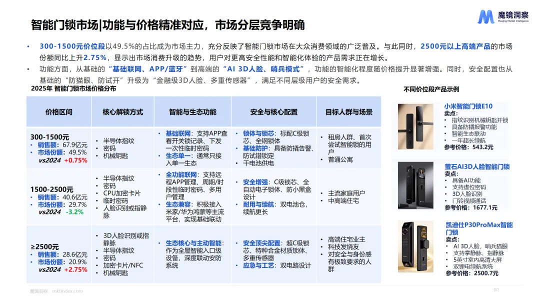 智能门锁市场实现爆发式增长,头部品牌凭借 AI 技术优势进一步提升市场集中度,消费者对安全功能的需求则持续助推行业高端化发展