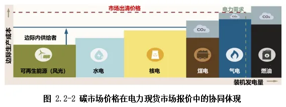 五是通过电碳协同提高了电能量市场出清价格。碳市场对于火电机组的外部性成本会体现在其在现货市场的报价之中,以此体现两个市场之间的协同作用,煤电机组、燃气机组、燃油机组将碳排放成本纳入到度电可变成本之中,推高了其市场报价,进而提高了电能量市场的出清价格,为可再生能源机组提供了更大盈利空间,推动了电力系统的低碳转型升级。