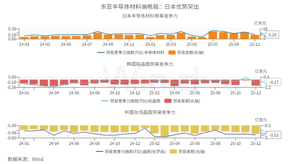 材料端:日本优势突出,韩台进口依赖度高