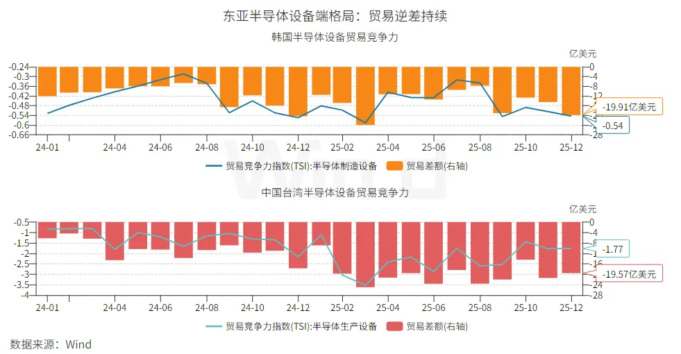 设备端:整体贸易逆差持续,韩台劣势显著