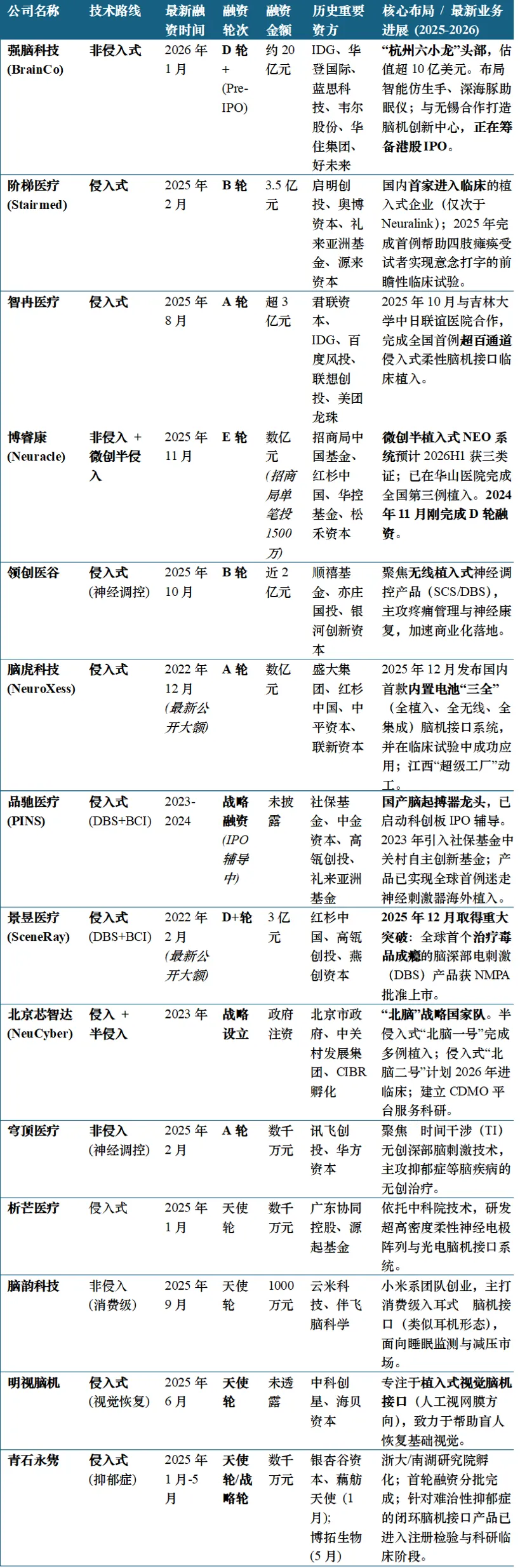 根据 Precedence Research 及招商证券的预测数据,全球脑机接口市场正处于从技术积累向商业化爆发,预计市场规模将从2025年的约29.4亿美元攀升至2034年的124亿美元,202年至2034年复合年增长率为17.35%。根据华创证券的数据,BCI市场结构呈现出显著的医疗主导的特征,医疗健康应用占据了超过60%的市场份额,远超娱乐等非医疗场景。这表明,尽管消费级概念频出,但脑机接口当前的商业化核心逻辑依然是解决帕金森、瘫痪、抑郁症等临床刚需。对于一级市场而言,这组数据验证了该赛道并非短期炒作的泡沫,而是一个由严肃医疗需求支撑的、具备长周期高成长性的千亿级蓝海市场。