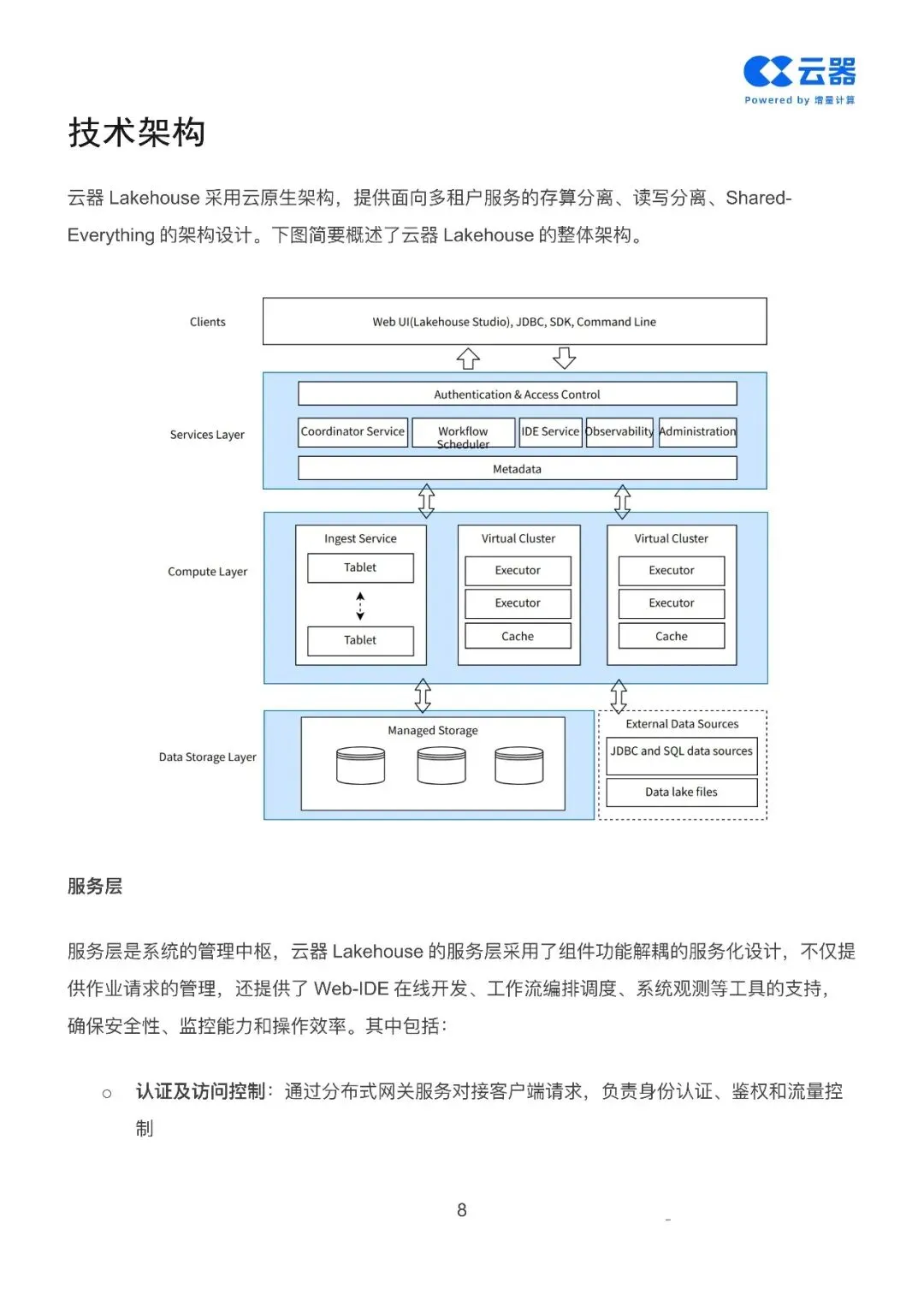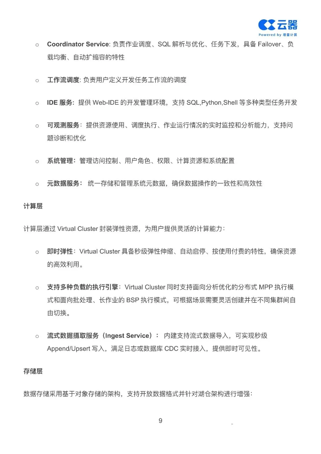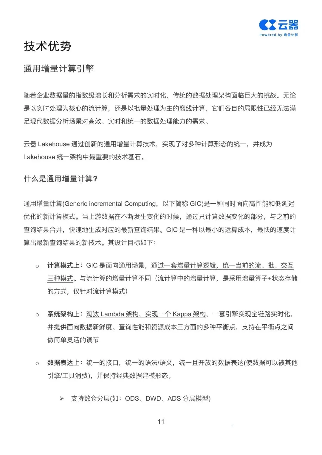 云器科技是一家多云及一体化的数据平台提供商。公司成立于20021年,首创了基于通用增量计算的"Single-Engine"为核心理念的湖仓平台--云器Lakehouse。云器Lakehouse使用SingleEngine统一流、批和交互分析,打破了传统数据平台数据冗余利多组件拼装的复杂架构限制,以一体化设计创新和卓越性能助力企业提升数据处理效率和协作能力、快速且经济地推动业务决策。