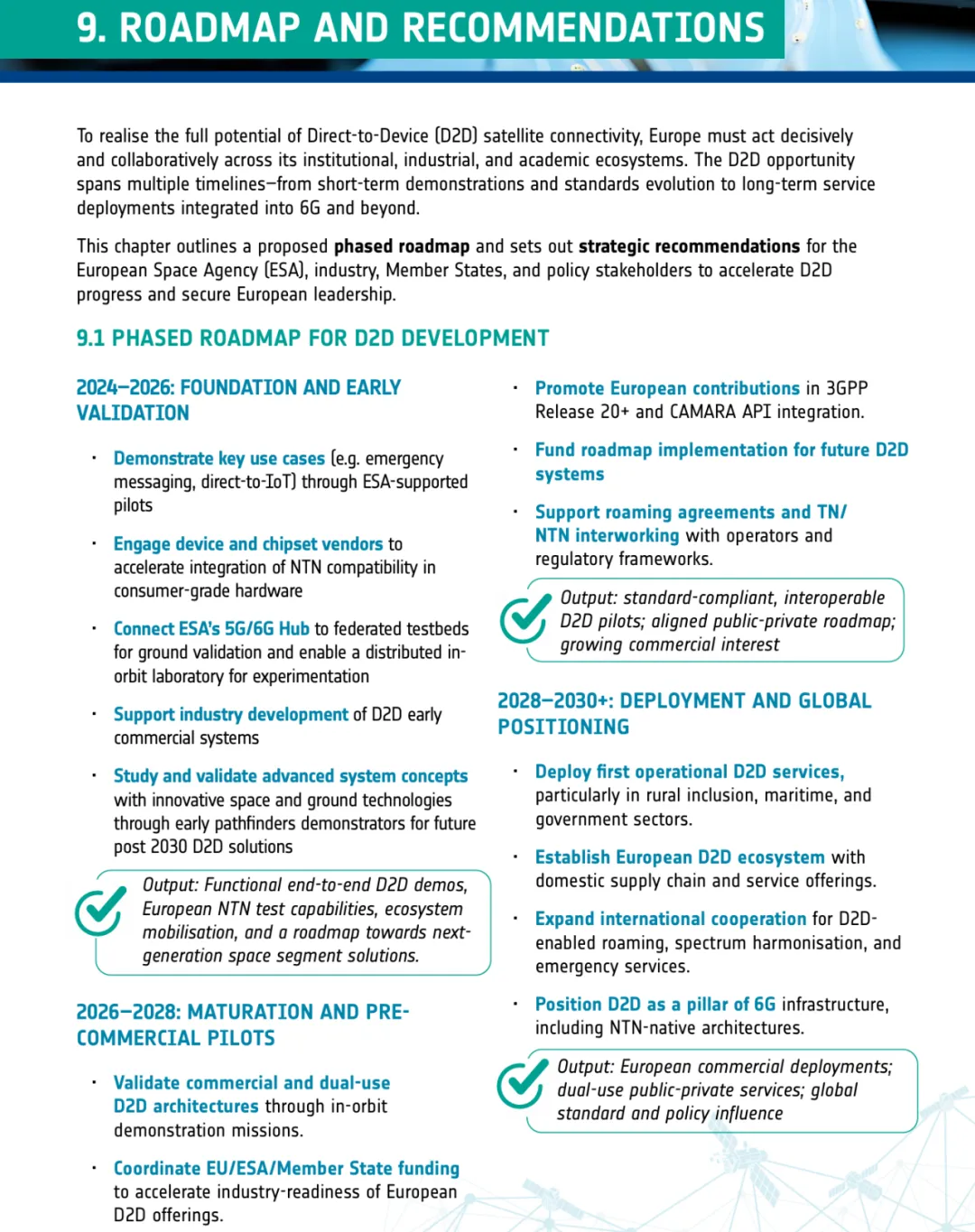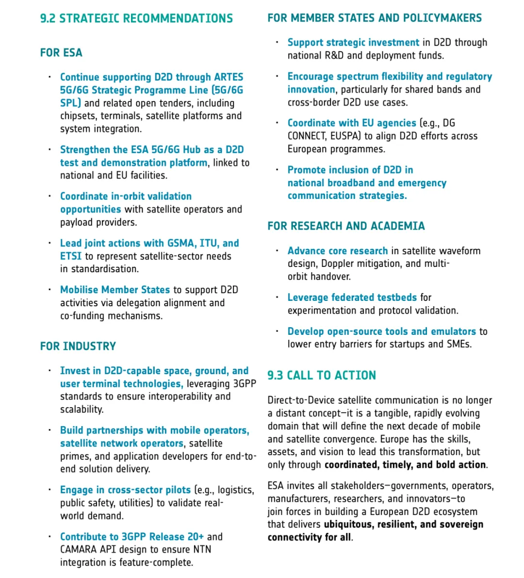 ESA 认为 D2D 是欧洲未来 6G 网络的重要战略方向。目标是通过技术自主、标准主导与产业协同,建立安全、可持续的太空通信生态。