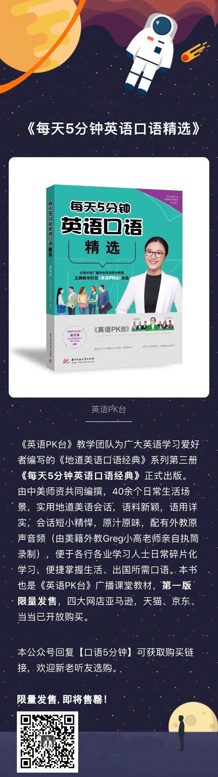 本公众号回复【口语5分钟】可获取购买链接,