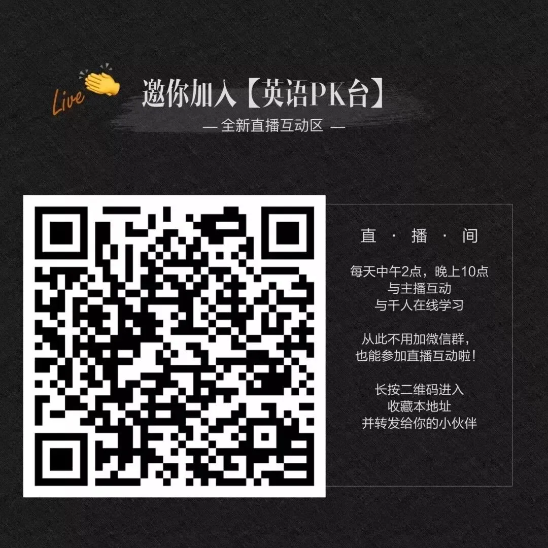 扫码关注英语PK台公众号