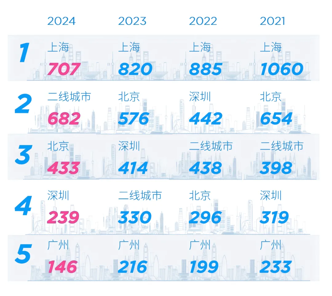 上海蝉联全国成交 TOP1,成交额 707 亿元,占比32%。