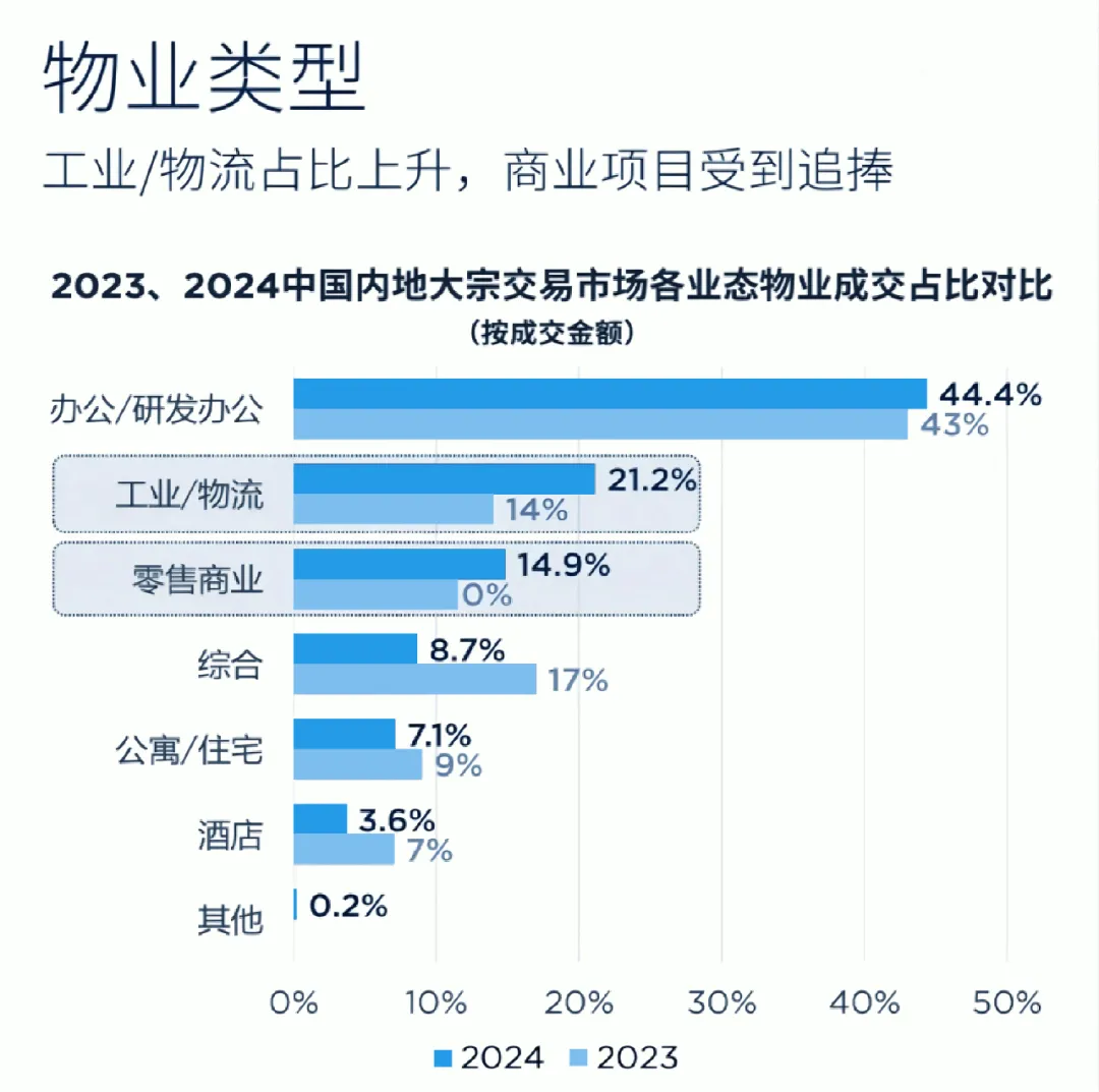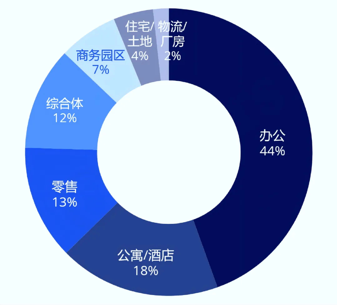 办公/研发类44%占居首位,公寓/酒店类资产热度不减 。