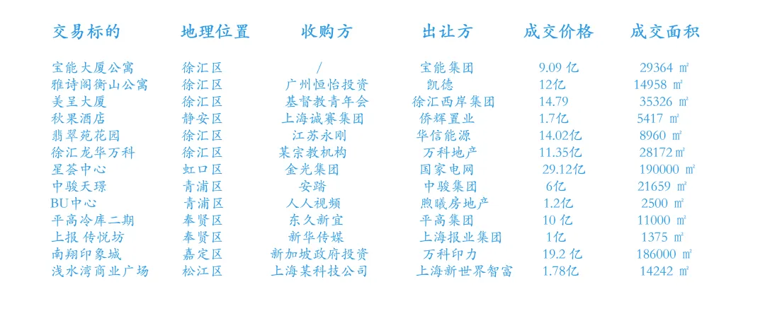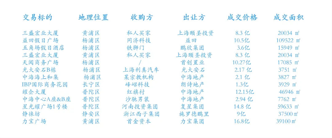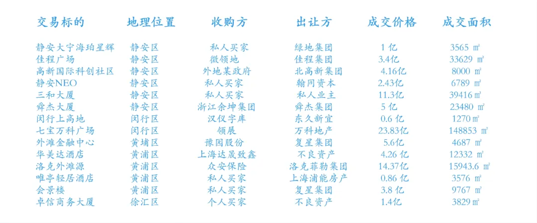 国企成交占比17%-19%,偏好核心资产;外地能源化工企业加速布局,收购办公、住宅及酒店类资产。