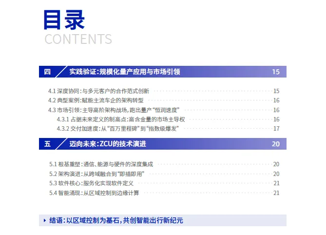 展望前路,架构的演进永无止境。ZCU的技术形态正沿着“从硬到软、从连接到智能”的清晰路径持续深化:从重塑通信与能源的底层根基,到推动跨域融合与即插即用的架构革新,再到以服务化(SOA)实现软件定义,最终向具备边缘计算能力的“智能节点”演进。
