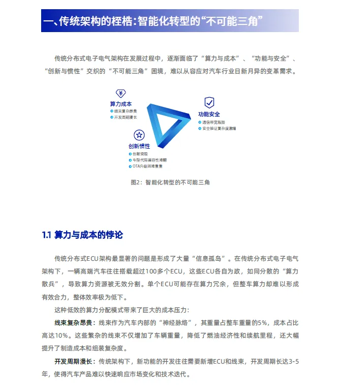 汽车产业的百年变局,归根结底是电子电气架构的代际更迭。“中央计算+区域控制”已不再是遥远的未来蓝图,而是决胜智能化的必经之路。在这场深刻的变革中,ZCU(物理区域控制器)作为重构整车神经与骨骼系统的核心载体,以物理层面的极致集成与逻辑层面的软硬解耦,成功打破了传统架构中算力、成本与安全的“不可能三角”。它不仅是连接数字大脑与机械肢体的枢纽,更是支撑“软件定义汽车”从概念走向落地的物理基石。