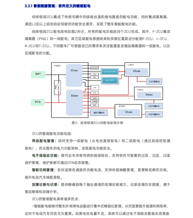 三是确保功能安全。系统满足ASIL B/D等级要求,并集成了智能配电与网络安全防护功能。