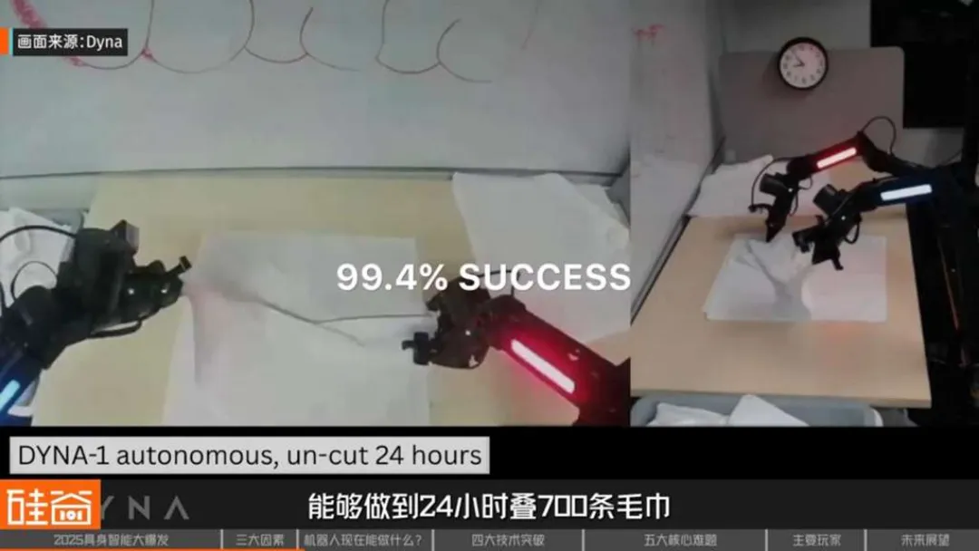 在工业之外,商业服务和专业服务领域也成为具身智能大展拳脚的舞台。在酒店和洗衣房,Dyna Robotics的机器人可以24小时不间断地折叠700条毛巾,成功率高达99.4%。在物流仓储领域,亚马逊仓库中Agility Robotics的人形机器人Digit已经累计搬运了10万个货箱,证明了其在真实商业流程中的可靠性。