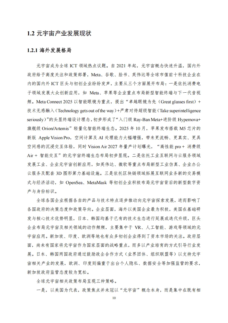 白皮书预估元宇宙会促使新信息形态(虚实融合)产生,会促使新数字器官(XR终端、AI眼镜)出现,会促使新经济模式(创作者经济、数字资产流通)形成,会促使新社会图景(数字"比特"与物理"原子"深度融合)呈现,会促使新沉浸业态(171种沉浸体验类型)出现五大变革方向。