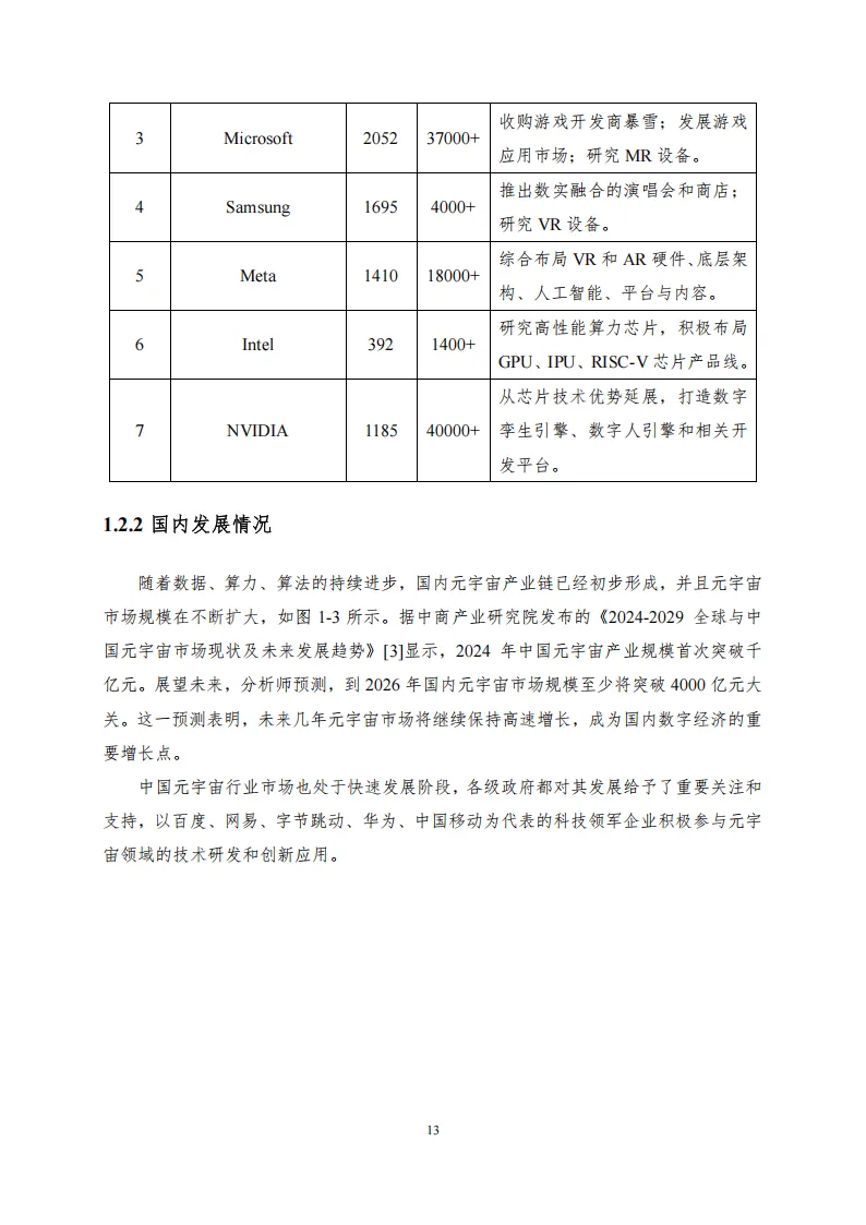 大洋彼岸以美国作为典型代表,选取了“以实向虚”这样的道路,着重关注AR/VR硬件、3D引擎等终端方面的技术,Meta、苹果、英伟达等行业巨头起着主导作用;而中国充分发挥通信基础设施所具备的优势,走出一条“以算向虚”的独特路线,依靠算力网络、5G/6G的能力来打造数实融合的应用。在2024年的时候,中国元宇宙产业规模突破了千亿元,预计到2026年将会达到4000亿元。