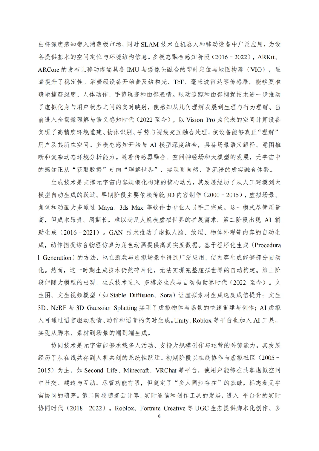 白皮书将元宇宙技术归纳为计算、感知、生成、协同、交互五大核心能力,形成“输入-处理-输出-信任-体验”的闭环。其演进趋势是从“功能叠加”转向“智能协同”,最终构建“算力网络化、感知全域化、生成智能化、协同可信化、交互自然化”的体系。