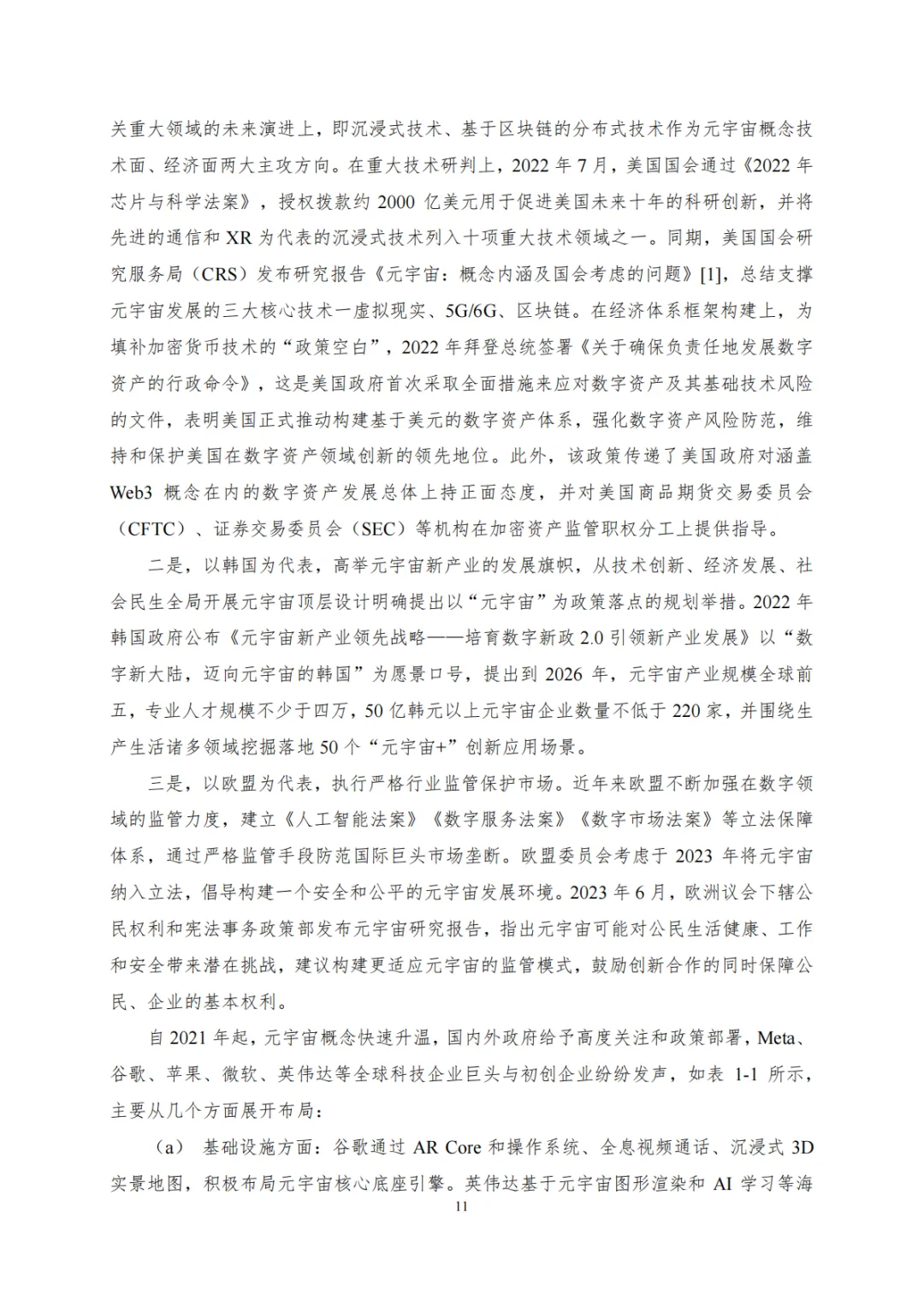 海外:以美国为龙头(基础研发强,如Meta的Horizon、NVIDIA的Omniverse),韩国举国家旗帜(《元宇宙新产业领先战略》),欧盟重监管(《人工智能法案》《数字服务法案》)。