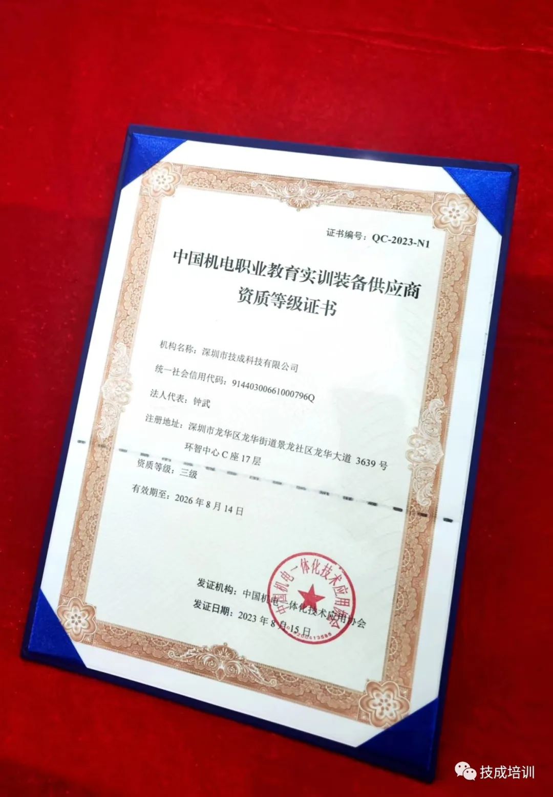 在获得这张证书之后,深圳市技成科技有限公司将继续利用自身的技术优势和行业经验,与全国的职业院校开展更加深入的合作,提升学生的实践能力和综合素质,共同探索和实践职业教育的创新和发展。