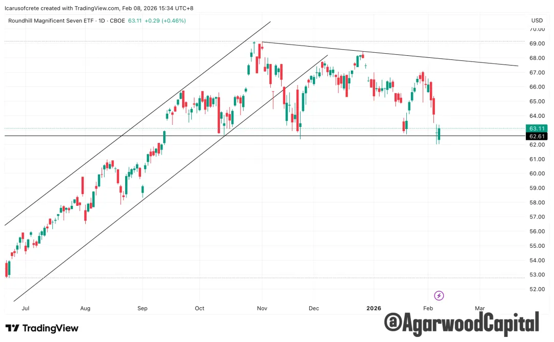 MAGS本週堪堪在區間底部站著,完全靠Nvidia一力支撐,其餘則表現相對弱勢,特別在本週公布幾大巨頭財報顯示超市場預期的背景下,市場更擔憂資本開支的暴增(Nvidia受益)。