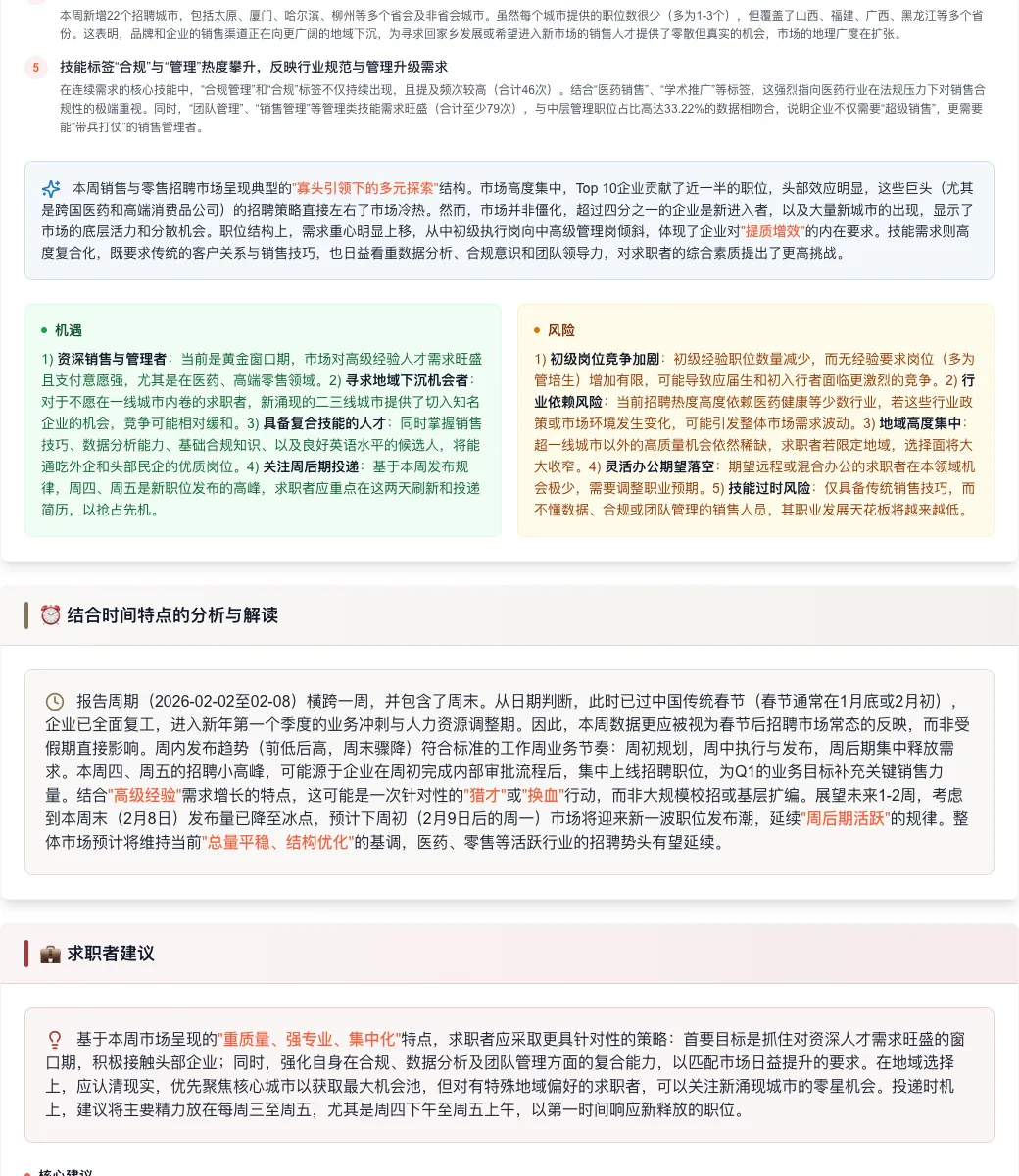 导语: 在2026年立春之际,招聘市场并未如预期般出现井喷式爆发,而是进入了一个更为深邃的“结构性调整期”。根据最新一周(2月2日-2月8日)的数据监测,销售与零售职位的招聘市场正上演着一场从“规模扩张”向“质量增长”的深度转型。
