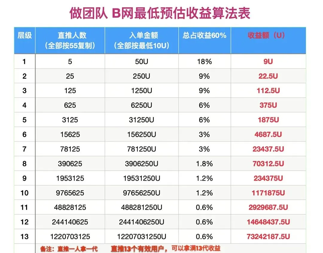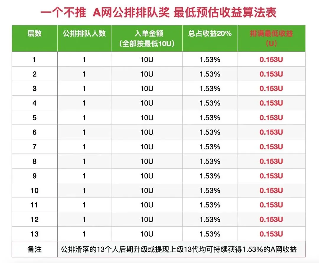 说不定它即将改写你的创业奇迹,刷新你之前所有创业成果的记录!给自己一个机会,把握财富的机会,学习成长的机会吧!今天要跟你分享的是一个未来必火的趋势性行业---DeFi4.0生态系统,该项目凭借全链智能合约自动化机制与算力动态产币模型,实现了真正的去中心化激励分配与公平运行,所有流程均在链上自动执行,让治理、收益及发展完全由社区共同推动。所有为社区作出贡献的参与者,都能获得丰厚回报奖励,这一机制具备可持续发展的基因。总结一下,它实现了既有眼前的收益,又有持续增长的收益,还有未来的收益,并且能给所有参与者带来每天的现金流,稳定的资产增长,行业的红利。我相信人人都希望项目一启动就立马有收益,没有一个会拒绝眼前利的!而今天要分享的项目正处于推广拉新阶段,所有参与者均可在这个阶段享受拉新带来的佣金分配,重要的是佣金分配的机制非常超前,所有参与者同时可以获得A网静态收益和B网动态收益,双网独立计算佣金,网体没有交叉,从而让所有参与者利益最大化,可以这样比喻,你一旦注册成功,就等于你在二条高速公路上拥有了二个收费站,只要路过的车辆每次路过都要向你缴费,因为当你一注册成功,系统立马启动全网一条线的公排模式,自动根据全网节点的新增时差快速为你排满十三个节点,快的话十几分钟,慢的话也就半个小时,所以所有伙伴刚刚注册完,收益就来了,少的有10来块,多的二三十、四五十,甚至有伙伴注册完还不到二天,收入已经有一百多,为什么呢,因为系统为你公排的十三个节点每次的入金、提现、升级都会给你带来收益,重要的是这收益是持续的,这是纯静态收益,无需你任何的付出,问题是你才投了多少?73!可以这样说,你仅仅花了73系统就送你十三个团队,假如有些伙伴运气极佳,公排下来的其中有很厉害的,在不久的将来能够创造千万业绩的,每次提现几百个,那你想想,你的73,就静态回报率,是不是很舒服!而B网是动态的收益,也就是各凭自身的努力来打造属于自己的网体,在这个网体中,佣金的分配机制非常简单,非常合理,非常公平,在这里没有极差制,没有业绩考核制度,没有大小区考核制度,所以不要担心被超越拿不到收益,不要担心大象腿拿不到收益,不要担心业绩不达标拿不到收益,在这里,你的网体有多大,就能够享受多大的佣金分配,只要在你网体下的、根据所处不同的位置,每新增一个节点的入金以及该节点每次的收益提现时复投的比例,你都能够获得相应的收益,而你能分配的的佣金是固定的,不会重拿、不会多拿、也不会少拿,智能合约机制都已经设定好的。如图所示,你的网体按五五复制的状态出现,就可以精准算出你的收益,73的门槛,只要用心点,五个节点,我想对所有怀揣财富梦想的创业者都不是难题吧,所以在这里,收益是完全可以预算出来的,关键就是你想要不想要,准备用多少时间来完成的事了。只有给创业者带来不断持续增长收益的项目才是每个创业者要的吧!市面上有很多的项目由于机制的因素,或者是项目方的目的,当参与者加入之后,为了能获得更大收益,得不断增加投资份额或者不断把获得的收益重新复投回去,否则就很难赚到钱,最终做来做去,做了个寂寞。甚至越做,资金搭进去越多,最终以没有获得收益或者亏损告终。那为什么在这个一次性只需73的机会中可以做到真正一次性,相反是积极鼓励提倡投资者不要一人多账号来运作?因为在这个项目中,创业者只要努力把一个账号做好,完全就能够实现每个人心中的财富梦想了。那它的逻辑在哪里呢,仅仅凭73能够有如此之大的成效呢?首先通过整个机制可以看到,虽然只是73,但机制决定了这个小小的73在佣金分配的过程中被不断地循环,从而产生了复利的效果:在公排网体,每个节点的收益都能从所属的十三个节点入金金额中分配到对应比例的佣金和这十三个节点每一次提现复投部分对应比例的佣金,记住是每一次提现的时候,也就是说所属网体提现越多,分配到的佣金就越多,提一次分一次,提n次分n次!这样还需要靠新资金的投入来获得收益吗?有这个必要吗?在直推网体,也同样的原理,每个节点都能从所属网体的每个节点入金金额中分配到对应比例的佣金和所属所有网体每一次提现复投部分对应比例的佣金,在这个机制中,每个节点的入金只有一次,但提现可以说是n次的,所以从入金73开始第一次分配产生收益到提现复投分配产生收益,再到产生收益又到提现复投,如此反复的循环,通过这样的循环,最终一个73让整个网体的节点都能够一次次获得收益,有了这样不断循环的机制,你说项目还有没有必要通过投资者做重复投资的动作吗?这就是资金复利产生的效果,重要的是只有这样的方式产生的复利才是做到真正没有泡沫的。无论循环多少次都不会有资金不够分配的风险。因为它永远是正波比的。在这套机制中,还有产生了一个复利的效果,那就是人脉的复利,在很多项目的机制中,每招募进来一位伙伴,我们只有从这次的成交中所获得的直推奖励之外,几乎就没有收益了,或许可能有点什么团队奖见点奖什么的,后来就没有任何关系了,甚至由于网体的排列,受极差喝业绩考核机制的约束,辛辛苦苦成交的伙伴并没有带来什么收益,但在这套机制中,不管是你的公排网体还是直推网体的每个节点都能给你带来一次次的收益,也就是说,只要新