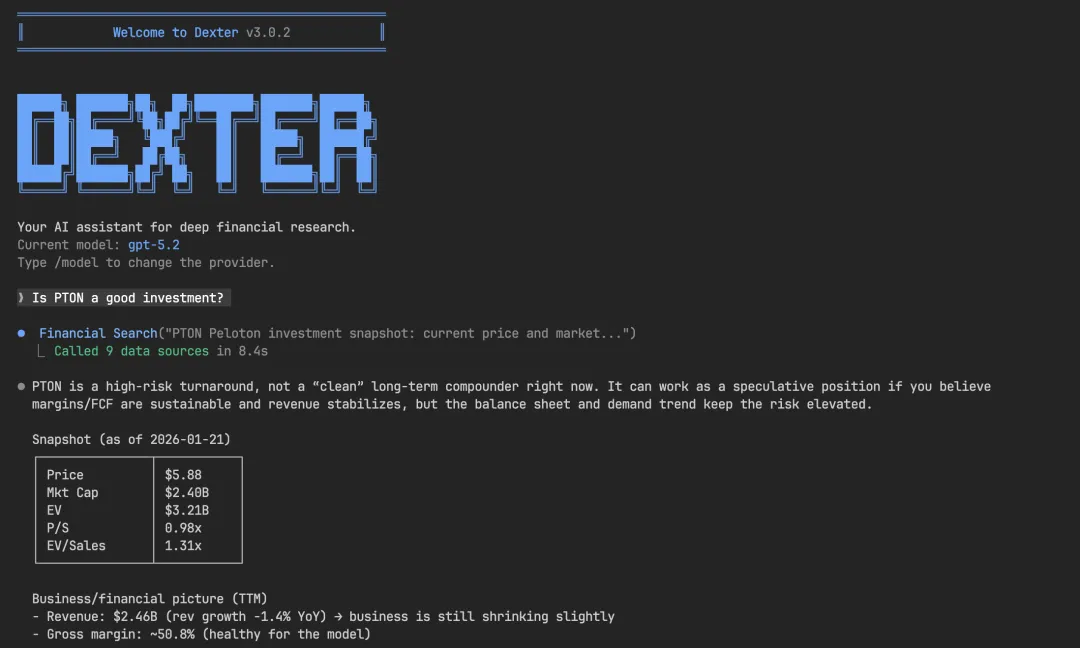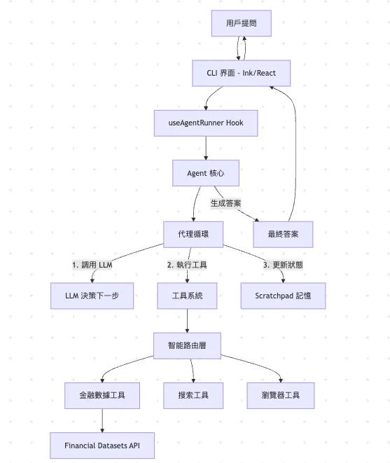 偶然在 GitHub 上刷到一個專案,看了一下發現有點意思。這是一個 CLI 工具,你給它一個自然語言的問題,它會自己規劃步驟、調用工具、查數據,最後給你一個答案。就像有個金融分析師助理在幫你幹活。