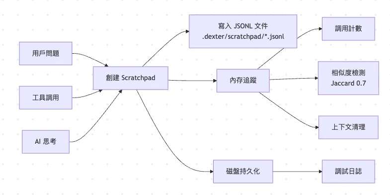 每次查詢,Dexter 都會創建一個 Scratchpad,就像給 AI 配了一個筆記本。這個筆記本記錄了: