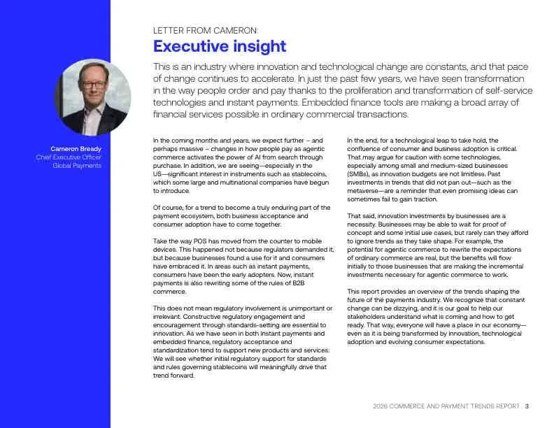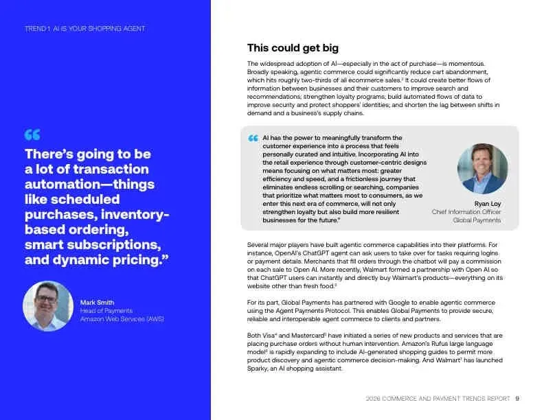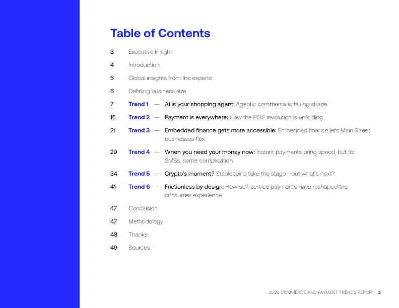 2026年的商业世界,将由AI代理、无处不在的收银台、嵌入式金融服务、即时到账的资金流、以及探索中的稳定币共同塑造。无论企业规模大小,成功的关键在于:拥抱能提升效率、增强信任并创造无缝体验的技术,同时审慎评估风险与成本。