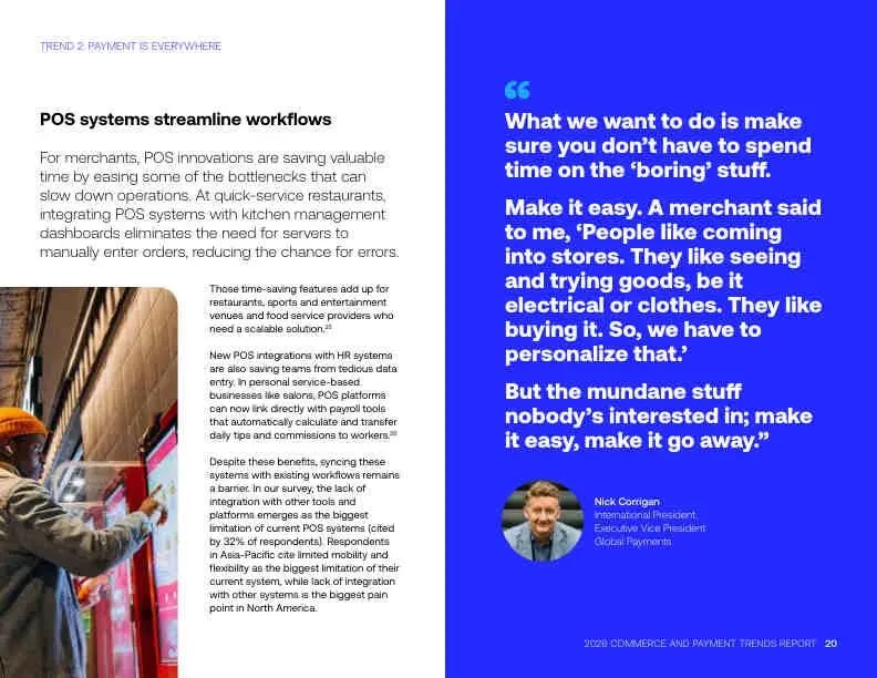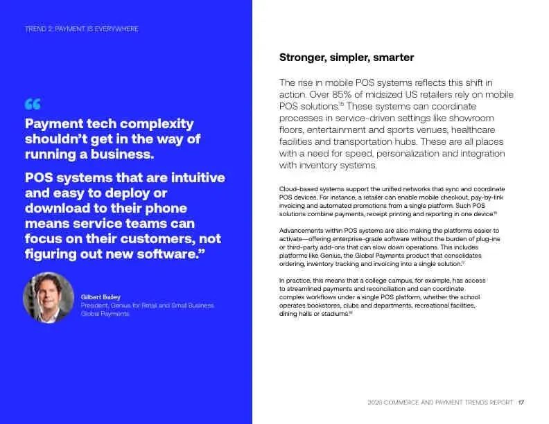 - 主要痛点:现有POS系统与其它业务软件(如会计、HR)集成困难(32%的商家认为这是最大问题)。