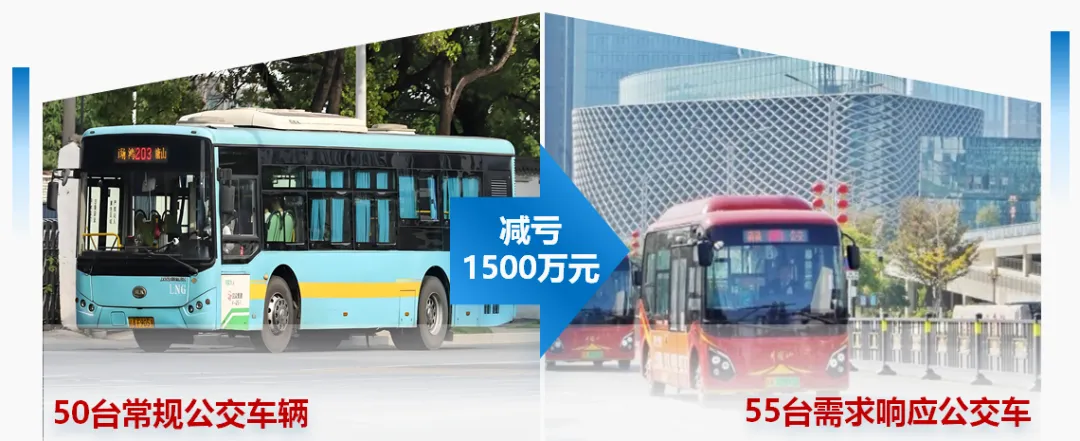 需求响应式公交的核心是“做减法”,在低客流区域或者夜间出行时段通过“动态响应”模式替代传统公交线路,减少空驶里程,降低固定线路运营的车辆能耗、人力等运营成本。小型需求响应公交车辆购车成本、能耗成本基本为大型公交的一半。南昌公交用55台需求响应公交车投入替代了50台常规公交车辆下线,每年减亏运营成本1500万元。