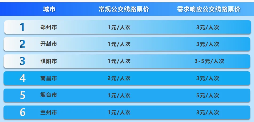 河南省常规公交票价普遍执行1元一票制,已执行长达20余年,公交票价调整涉及民生保障,传统公交票价调整障碍多、难度大,即使调高票价,收入增加有限。需求响应公交实行市场调节价,有利于建立多层次、差别化的价格体系,实现优质优价,增加企业营收。