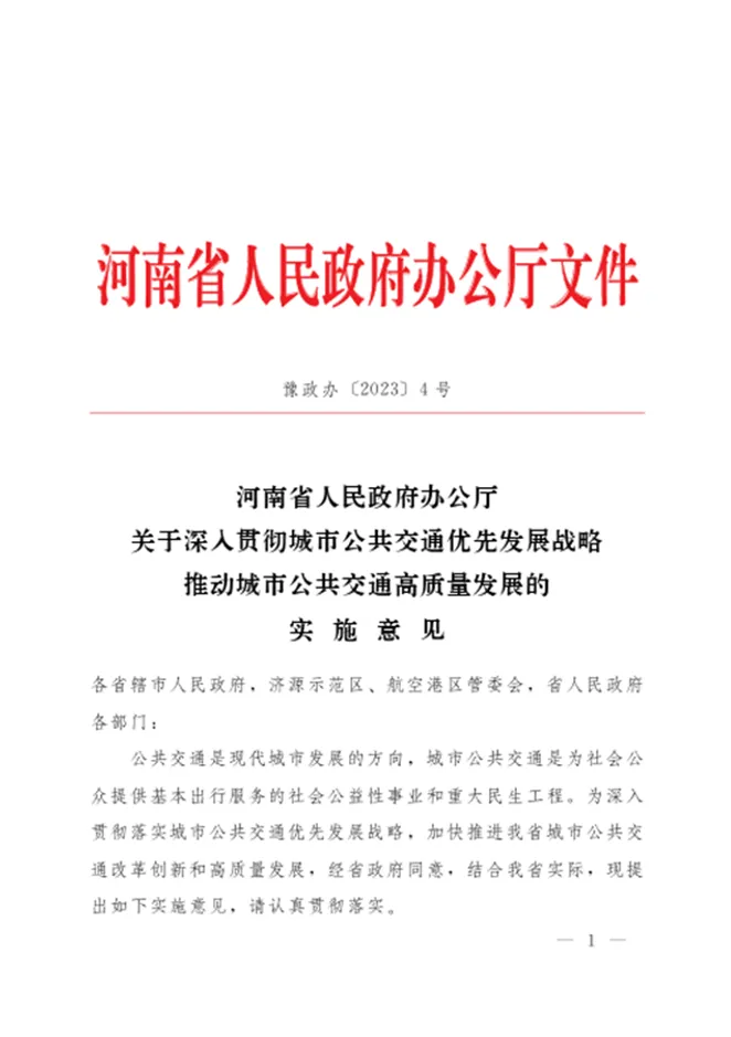 《河南省人民政府办公厅关于深入贯彻城市公共交通优先发展战略推动城市公共交通高质量发展的实施意见》(豫政办〔2023〕4号)提出,“积极发展定制公交、旅游公交等特色服务”。