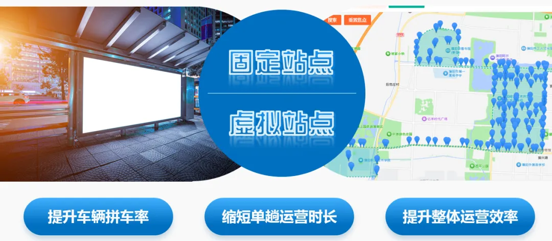 采取“固定站点+虚拟站点”的布局方式。依托现有公交站台为区域核心换乘节点,满足网约公交与常规公交的换乘衔接;围绕乘客高频出行场景,按需在小区出入口、商业综合体周边、写字楼旁、产业园区门口等区域科学设置虚拟站点,通过数字化标注、现场简易标识设置的方式明确停靠位置,核心满足乘客“就近上车、就近下车”的便捷性需求。引导乘客向就近虚拟站点集聚,提升车辆拼车率,缩短单趟运营时长,提升整体运营效率。