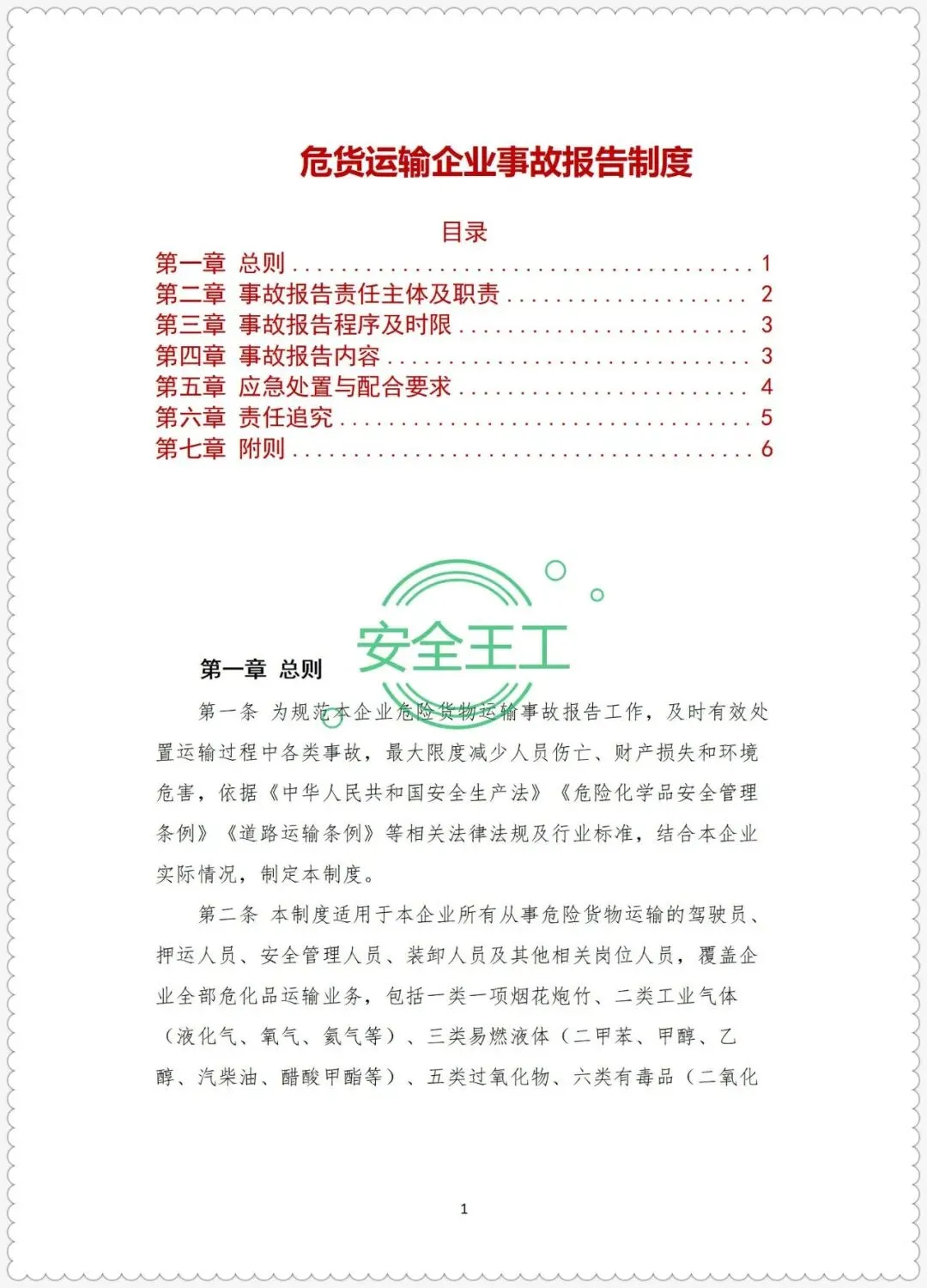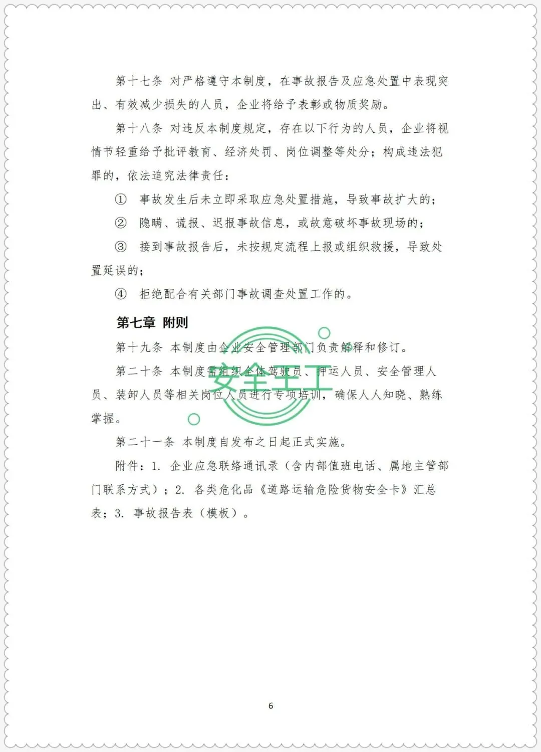 危货运输企业事故报告制度+污水厂安全奖惩管理制度