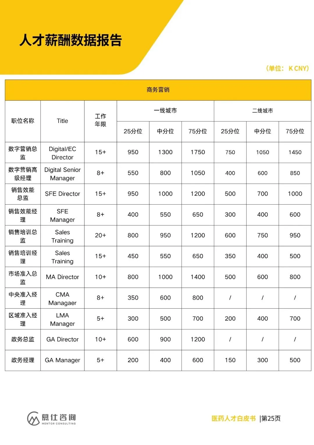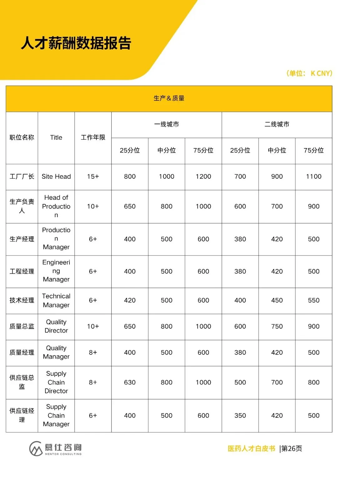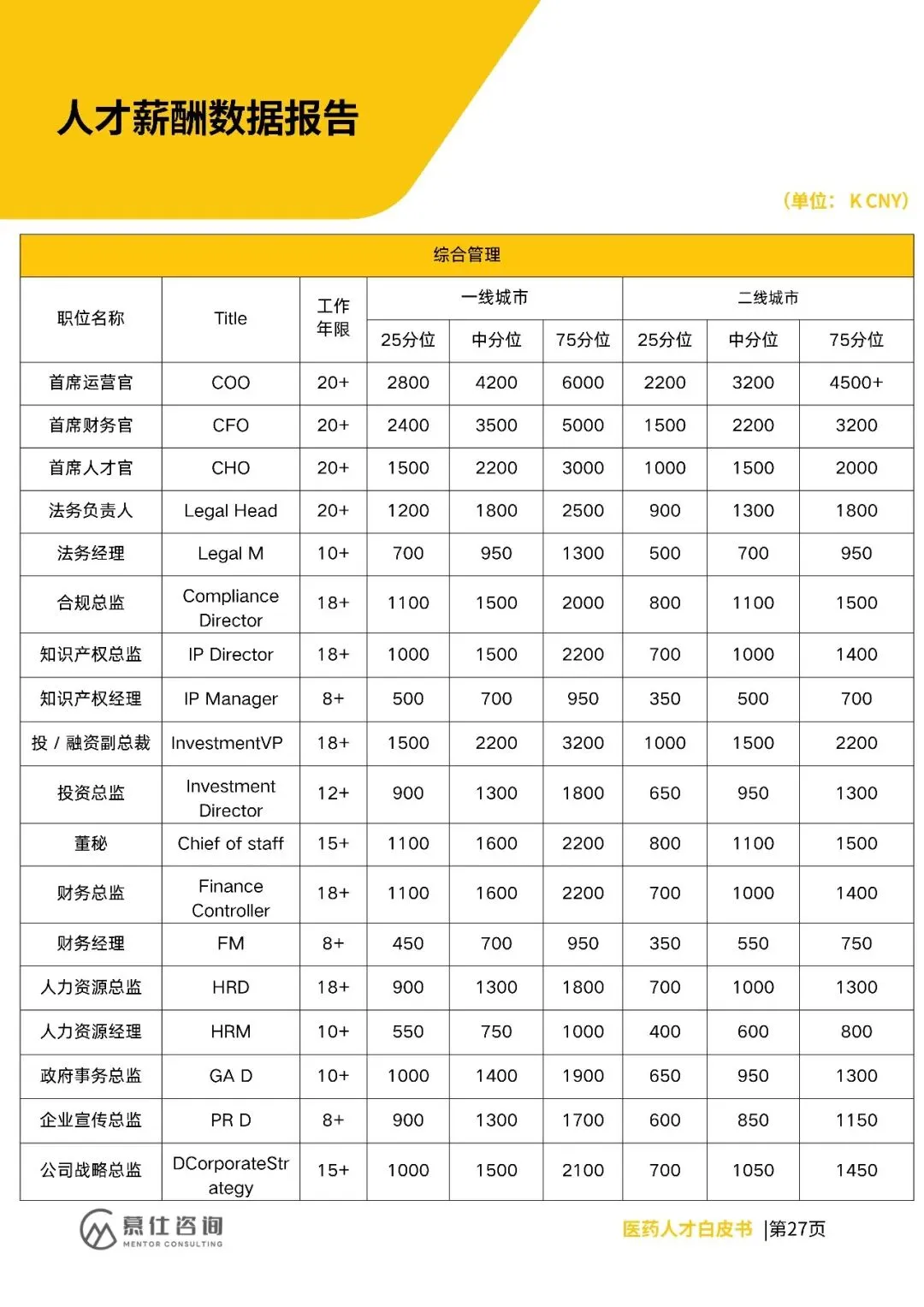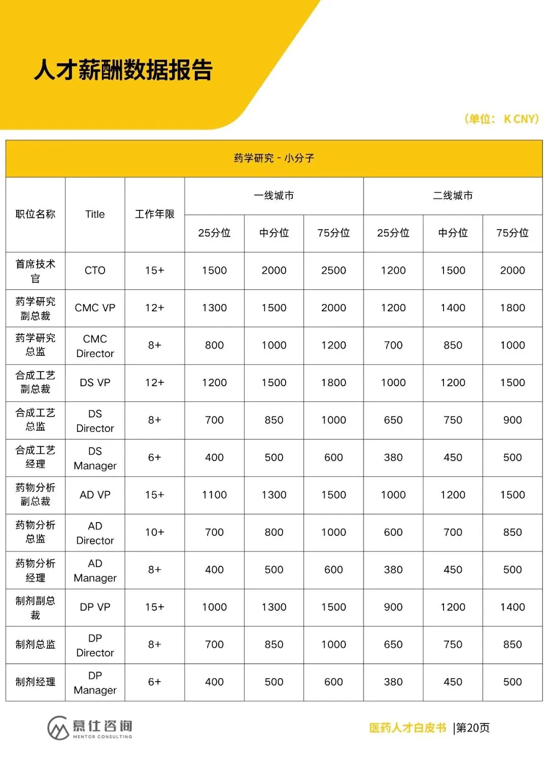 招聘上,早研、CMC、临床等核心领域需求向创新载体集中,复合型人才(如AI临床、国际监管)紧缺,企业重项目真实性与长期绑定。薪酬方面,各岗位分位值明确,高端岗(如CSO、CMO)一线城市中分位达2500K、3200K,二线城市略低。