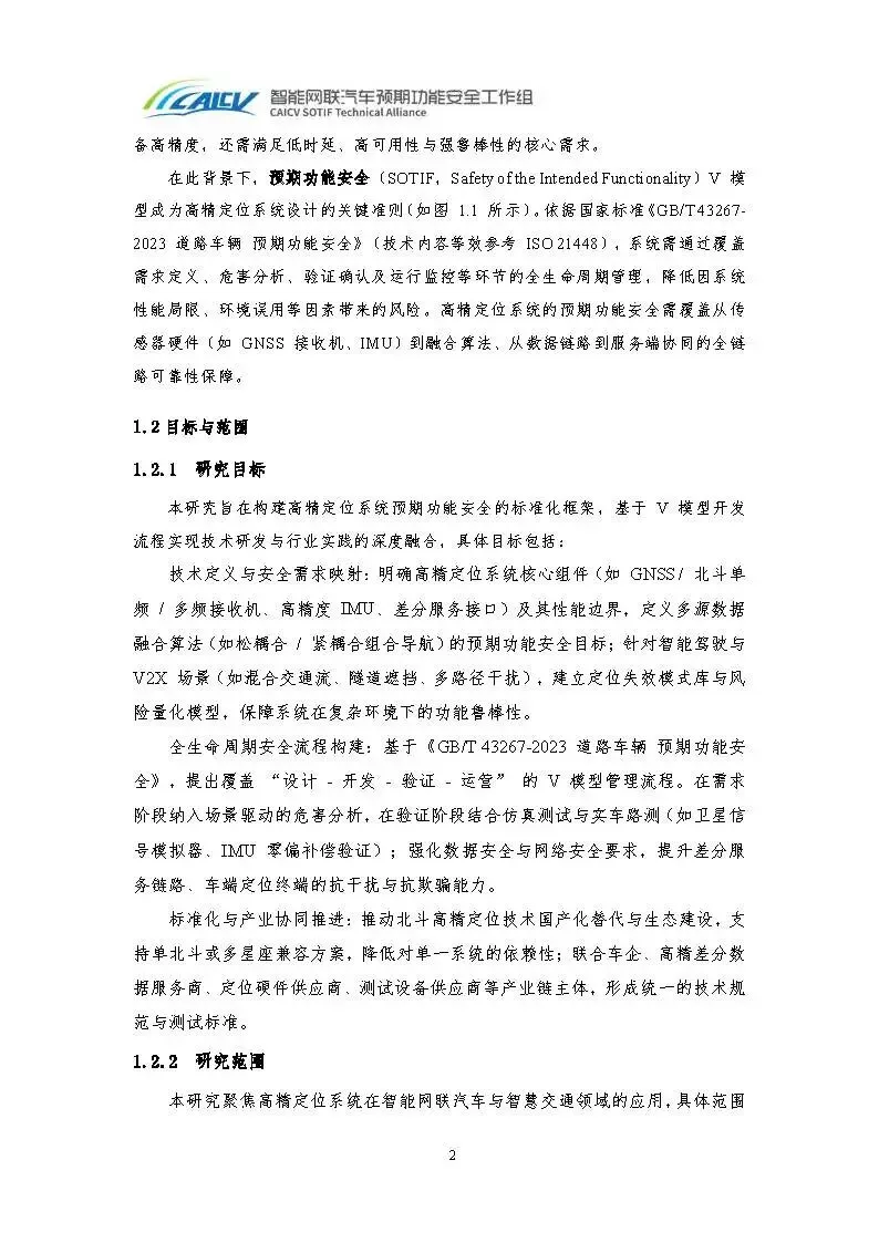 本研究旨在构建高精定位系统预期功能安全的标准化框架,基于V 模型开发流程实现技术研发与行业实践的深度融合,明确高精定位系统核心组件(如GNSS / 北斗单频/ 多频接收机、高精度IMU、差分服务接口)及其性能边界,定义多源数据融合算法(如松耦合/ 紧耦合组合导航)的预期功能安全目标;针对智能驾驶与V2X 场景(如混合交通流、隧道遮挡、多路径干扰),建立定位失效模式库与风险量化模型,保障系统在复杂环境下的功能鲁棒性。