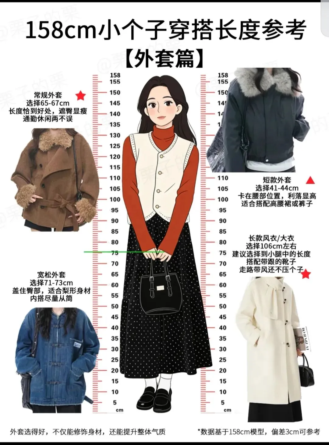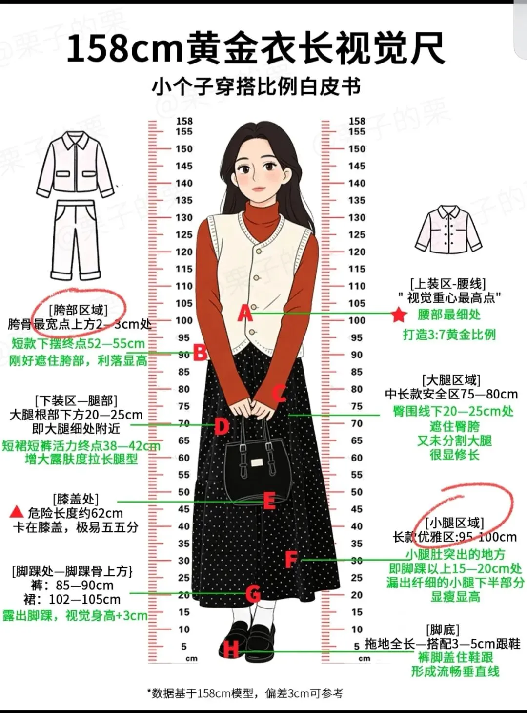 别担心!今天这份专为158cm女生定制的“黄金衣长视觉尺”穿搭指南,将用精准的数据告诉你:选对长度,比选对款式更重要。只要掌握这几个关键数字,视觉增高10cm不是梦!