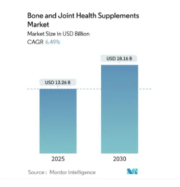 骨骼健康是贯穿人类一生的核心健康命题:儿童期是骨量积累的黄金关键期,孕期与哺乳期关乎母婴双方骨骼代谢平衡,45岁以上新中年阶段迎来骨量流失加速、骨质疏松风险攀升的重要转折点。根据Mordor Intelligence数据,骨骼和关节健康补充剂市场在2025年创造了132.6亿美元的收入,预计将以6.49%的复合年增长率增长,到2030年达到181.6亿美元。亚太地区作为增长最快区域之一,增速预计达8%左右,中国市场增速有望超越全球平均水平。