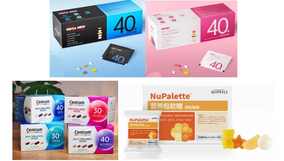 目前,市场上常见的营养包大多基于性别和年龄划分,每袋配置几种不同成分的胶囊或片剂,消费者可以根据自己的性别和年龄区间进行选购。比如健安喜(GNC)旗下的“每日营养包男性40+”、“每日营养包女性40+”等;赫力昂也研发了针对30-50岁群体的善存海外进阶营养包,既能保证营养摄入又方便食用。考虑到产品的口味口感和外观体验,仙乐健康在2025年全新推出NuPalette™营养包软糖,围绕眼、脑、成长以及自护力的核心营养需求,通过科学组合和工艺提升实现品类升级。