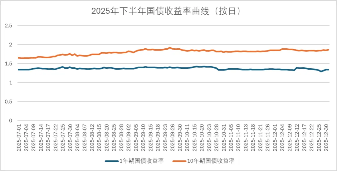 图1 2025年下半年1年期国债与10年期收益率日线,数据来源:中国货币网