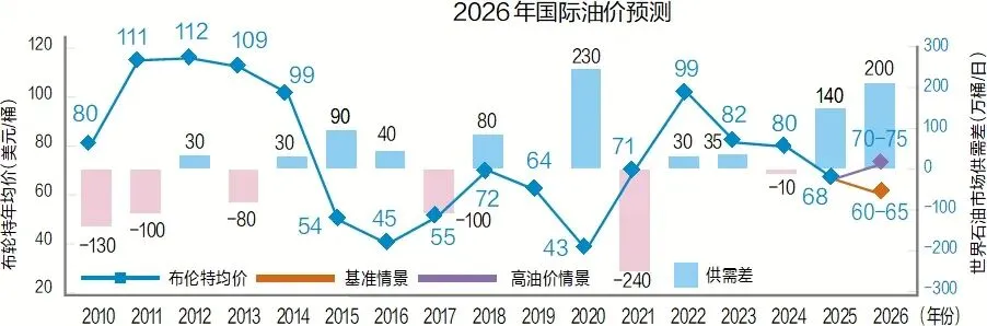 2026年,世界之“变”催化行业规则重塑,全球将呈现“博弈加剧、风险外溢加大、供应链加快重构”的态势。地缘政治格局剧变,大国博弈进入深度调整新阶段。经济增长动能转“变”,从周期复苏到结构性增长,人工智能规模化应用、绿色低碳转型投资构成增长双引擎,能源需求正从总量扩张转向总量扩张与结构优化并重。能源政策方向突“变”,全球能源发展道路出现重大分歧,应对气候变化共识出现裂痕,化石能源与非化石能源消费同步增长,化石能源需求潜力增大,油气达峰时间推迟。石油市场主导力量转“变”,全球石油市场主要由供需基本面主导,从供需紧平衡转向明显过剩,全球石油市场将在“供需过剩现实”与“地缘冲突风险”之间动态博弈,基本面主导下,布伦特均价预计为60~65美元/桶,地缘冲突主导下,或将升至70~75美元/桶。天然气市场供需态势转“变”,从紧平衡趋向宽松,全球天然气需求增速回升,供应增量高于需求增量,国际气价下行通道开启。全球炼化格局生“变”,产能格局加速重塑,炼油格局呈现区域分化、中心东移特征,乙烯处于产能增长和产业升级阶段,区域分化特征显著。