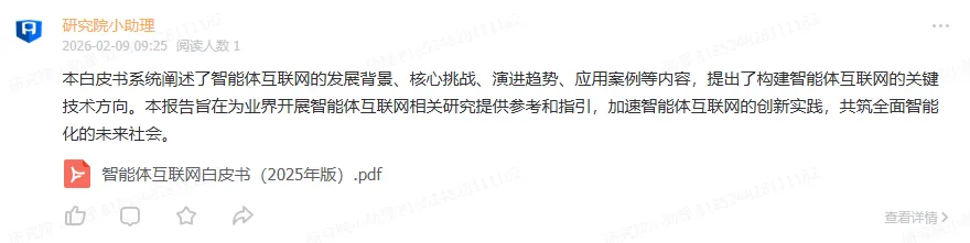 基于此,本白皮书系统阐述了智能体互联网的发展背景、核心挑战、演进趋势、应用案例等内容,提出了构建智能体互联网的关键技术方向。本报告旨在为业界开展智能体互联网相关研究提供参考和指引,加速智能体互联网的创新实践,共筑全面智能化的未来社会。